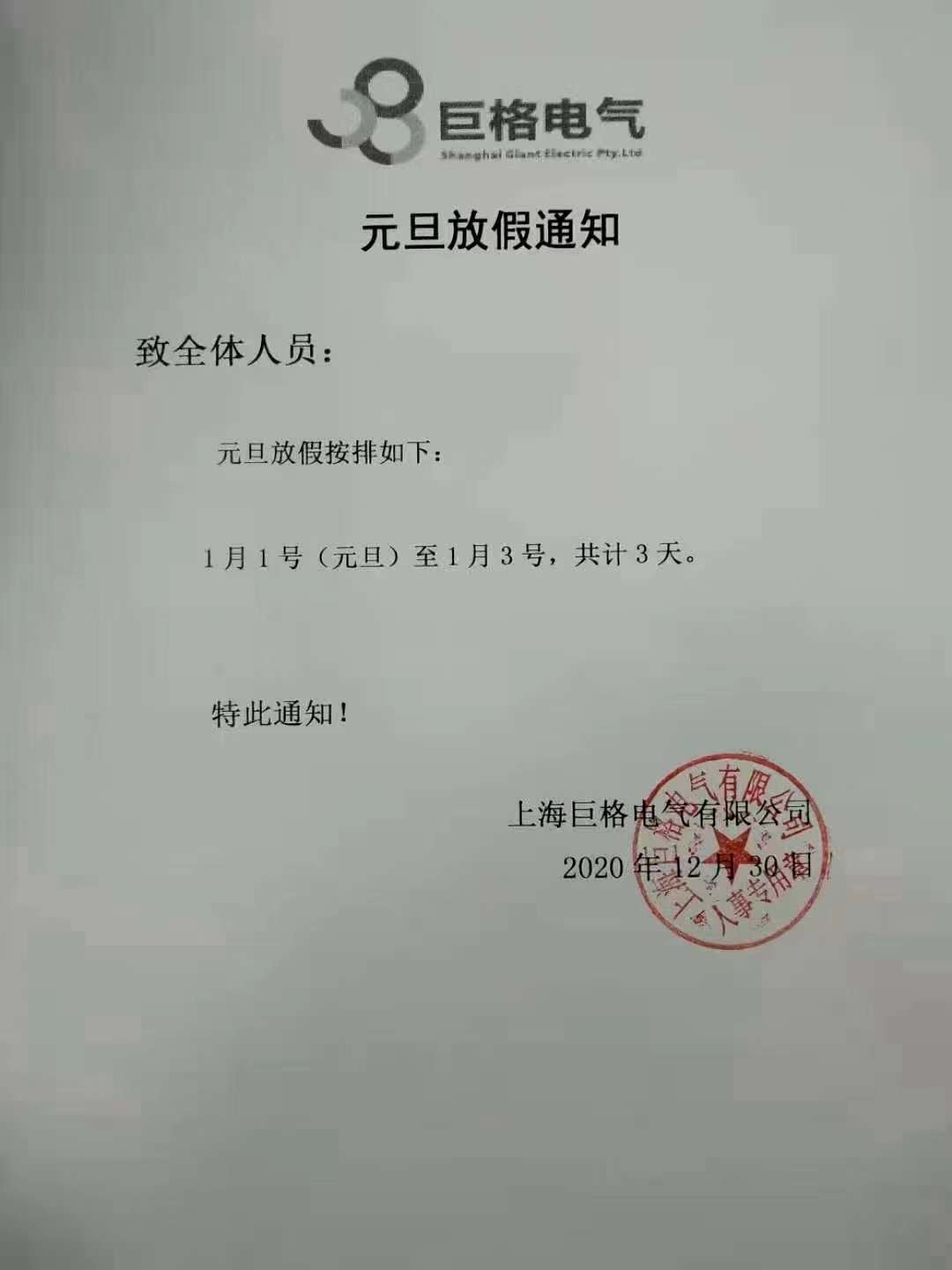 上海巨格电气预祝大家元旦快乐!元,始也。元旦,一年之始也。愿大家新的一年,有希望,有期待,有方向,有奋斗目标,共同开启新的征程,达成新的梦想!